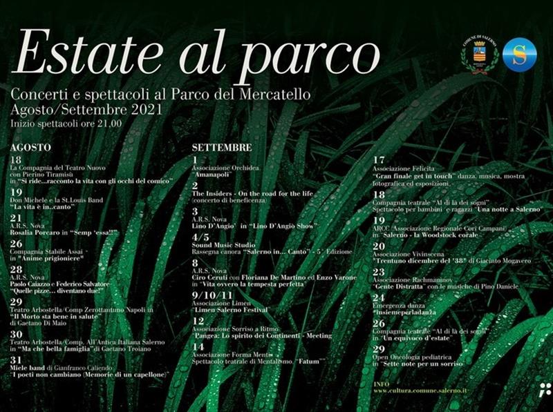 Dal 18 agosto al 23 settembre, la rassegna di eventi al Parco del Mercatello promossa dal Comune di Salerno