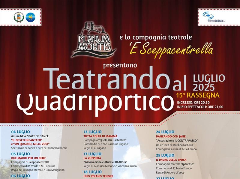 Tutto pronto per l’undicesima edizione della rassegna “Teatrando al Quadriportico”, organizzata dall’associazione Planum Montis e della compagnia teatrale ‘E Sceppacentrella,…