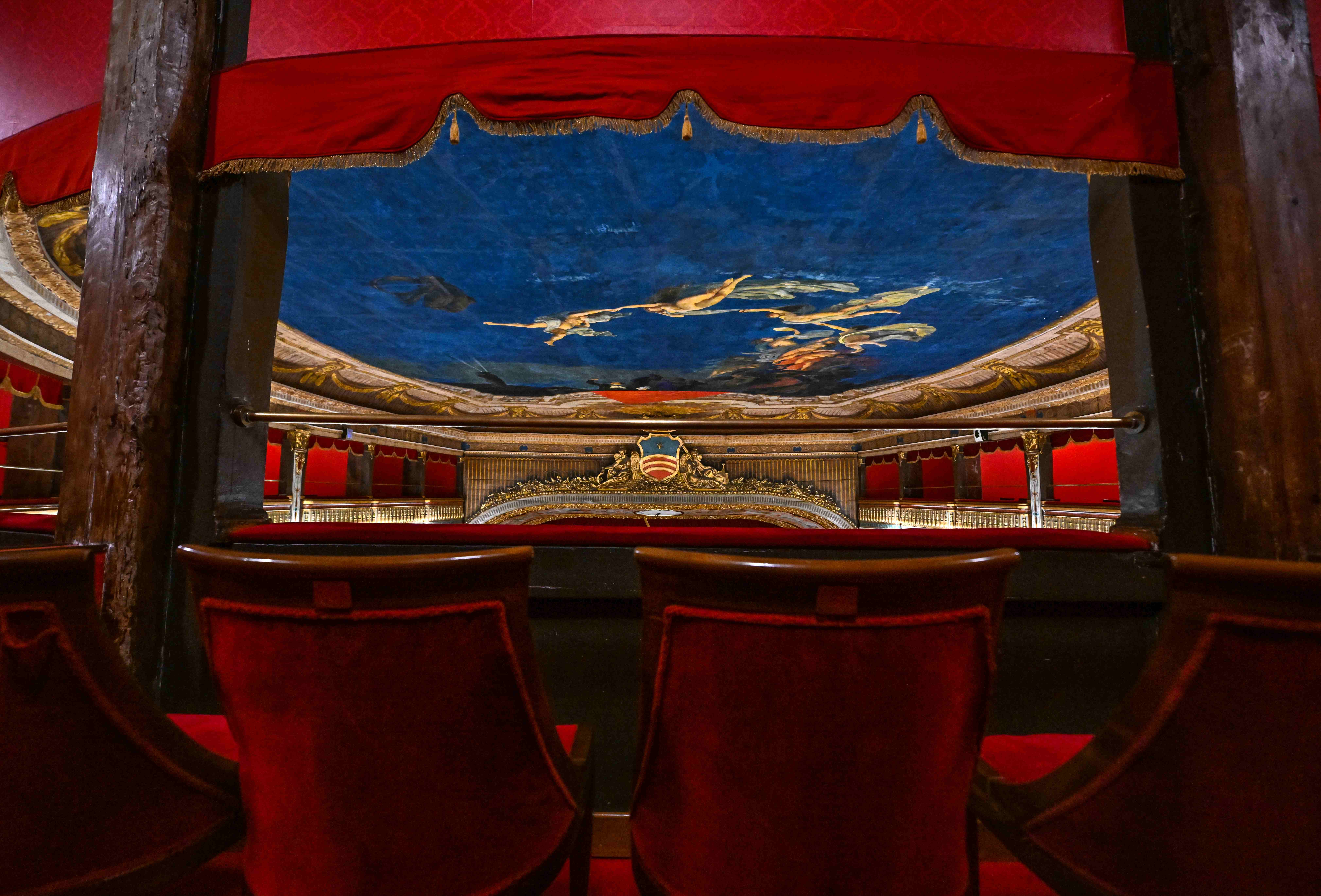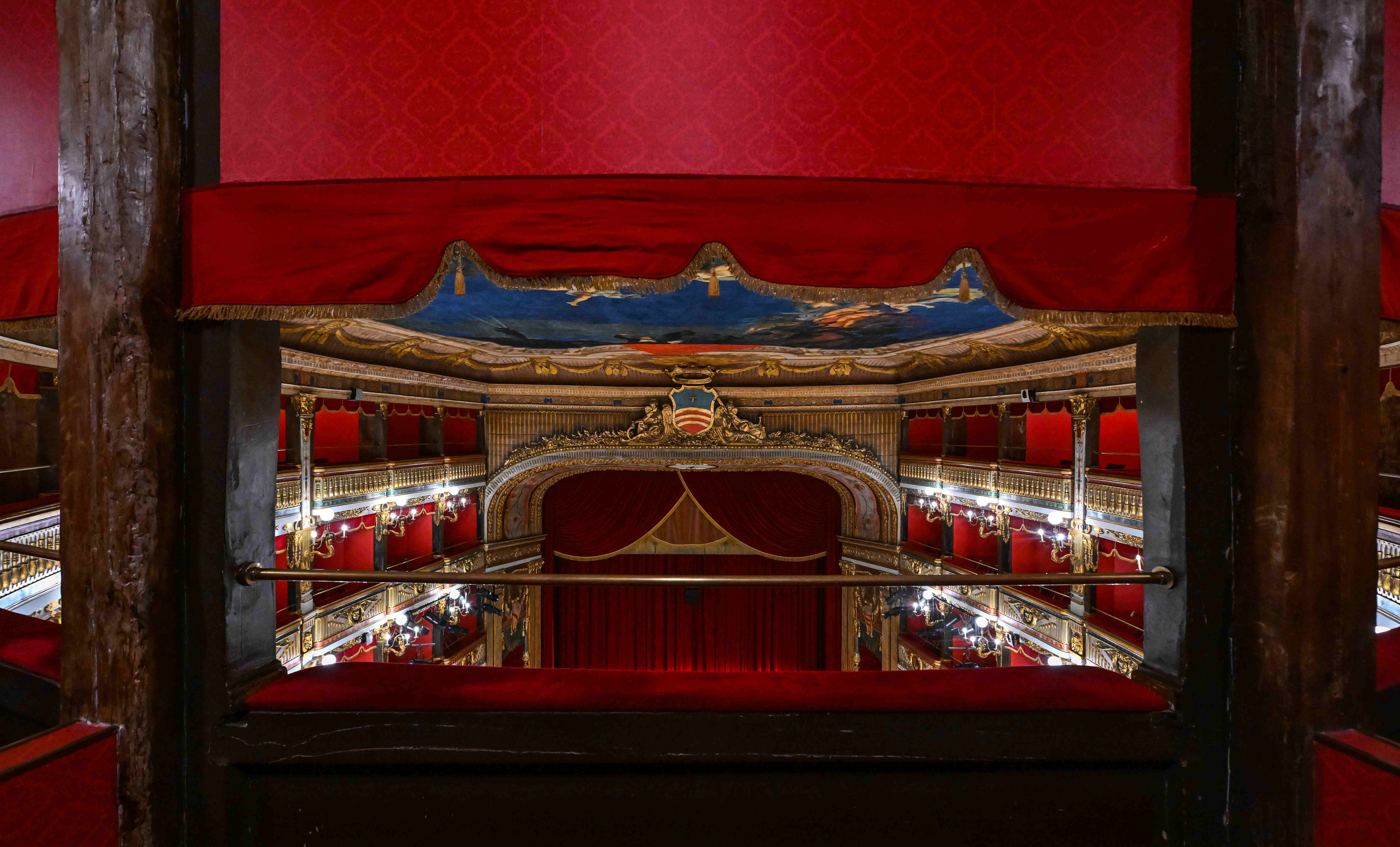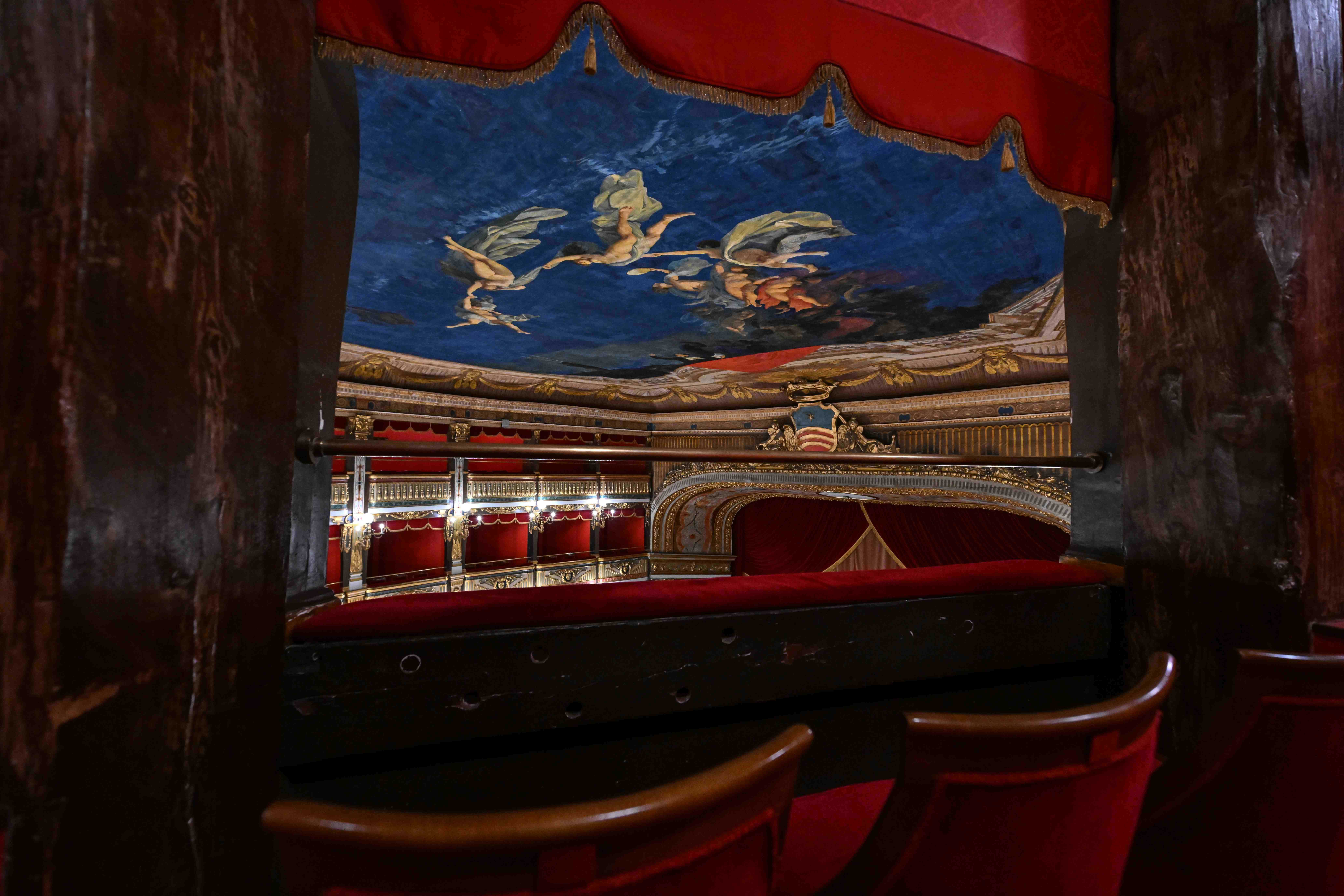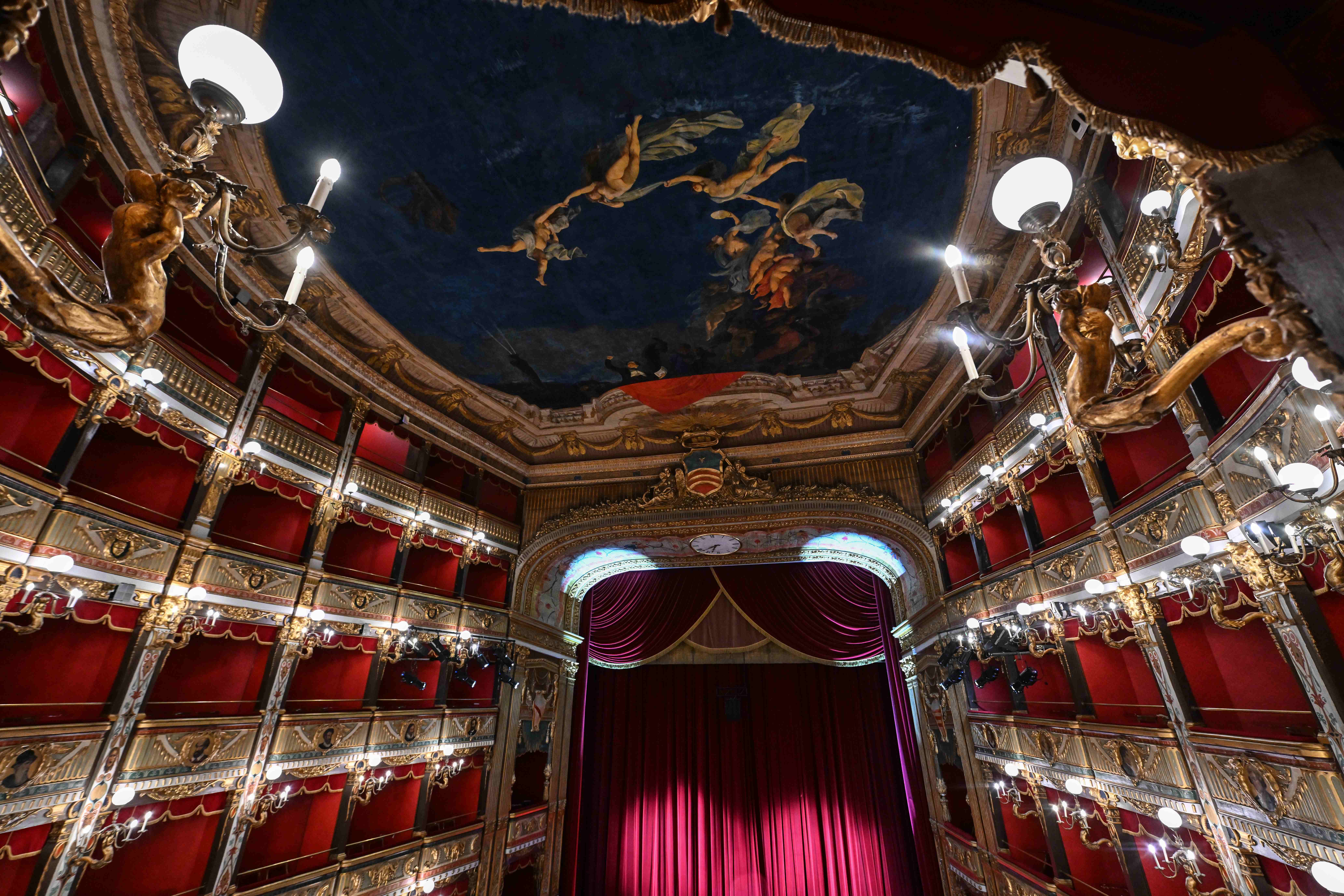 If Di Criscito’s sky represents the consecration of the hall to the great season of Italian melodrama, the curtain is entrusted with celebrating the history of the city by evoking a glorious episode from the past.