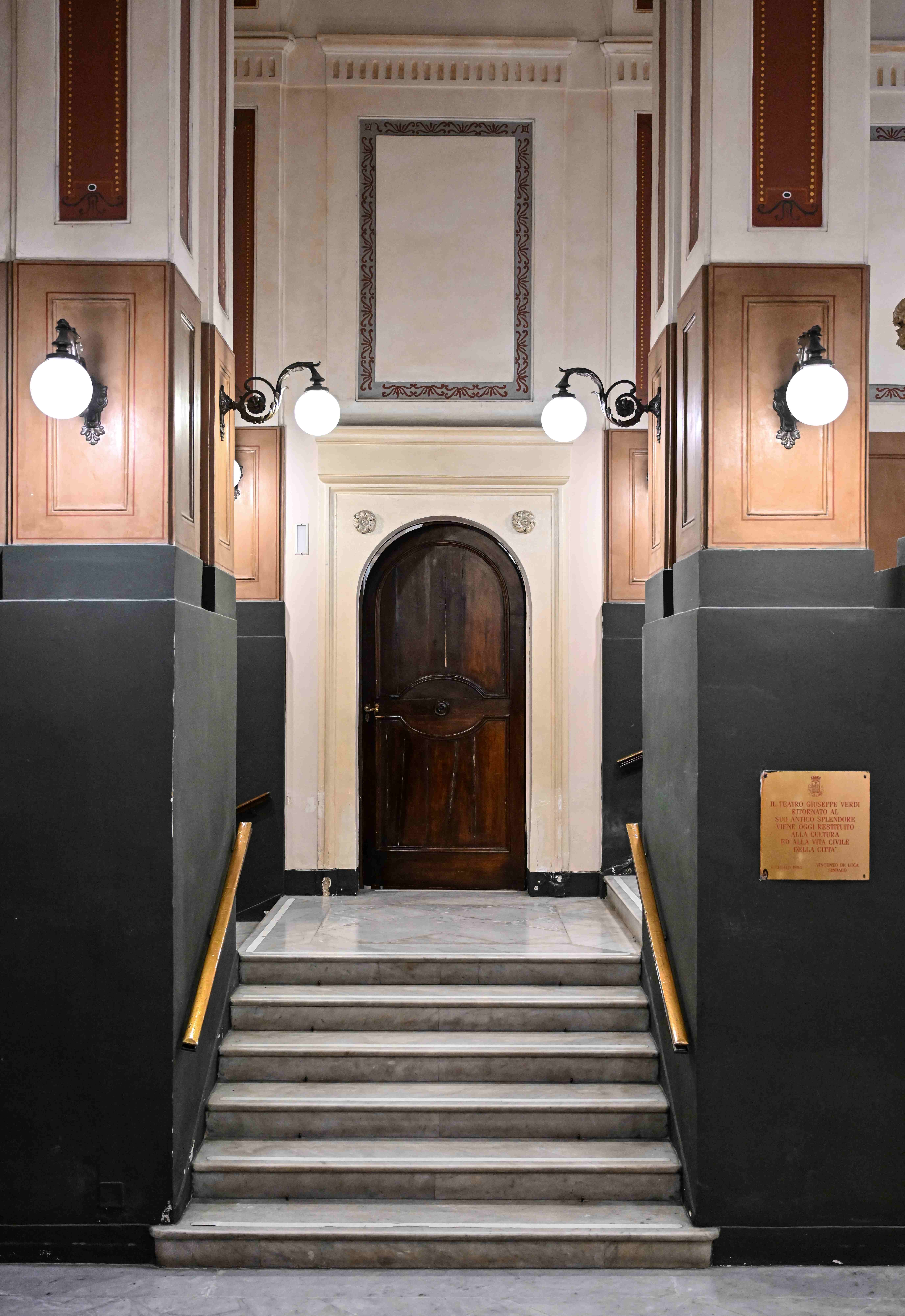 The Giuseppe Verdi Municipal Theatre of Salerno is a nineteenth‑century wooden theatre, with four tiers of boxes and a gallery.