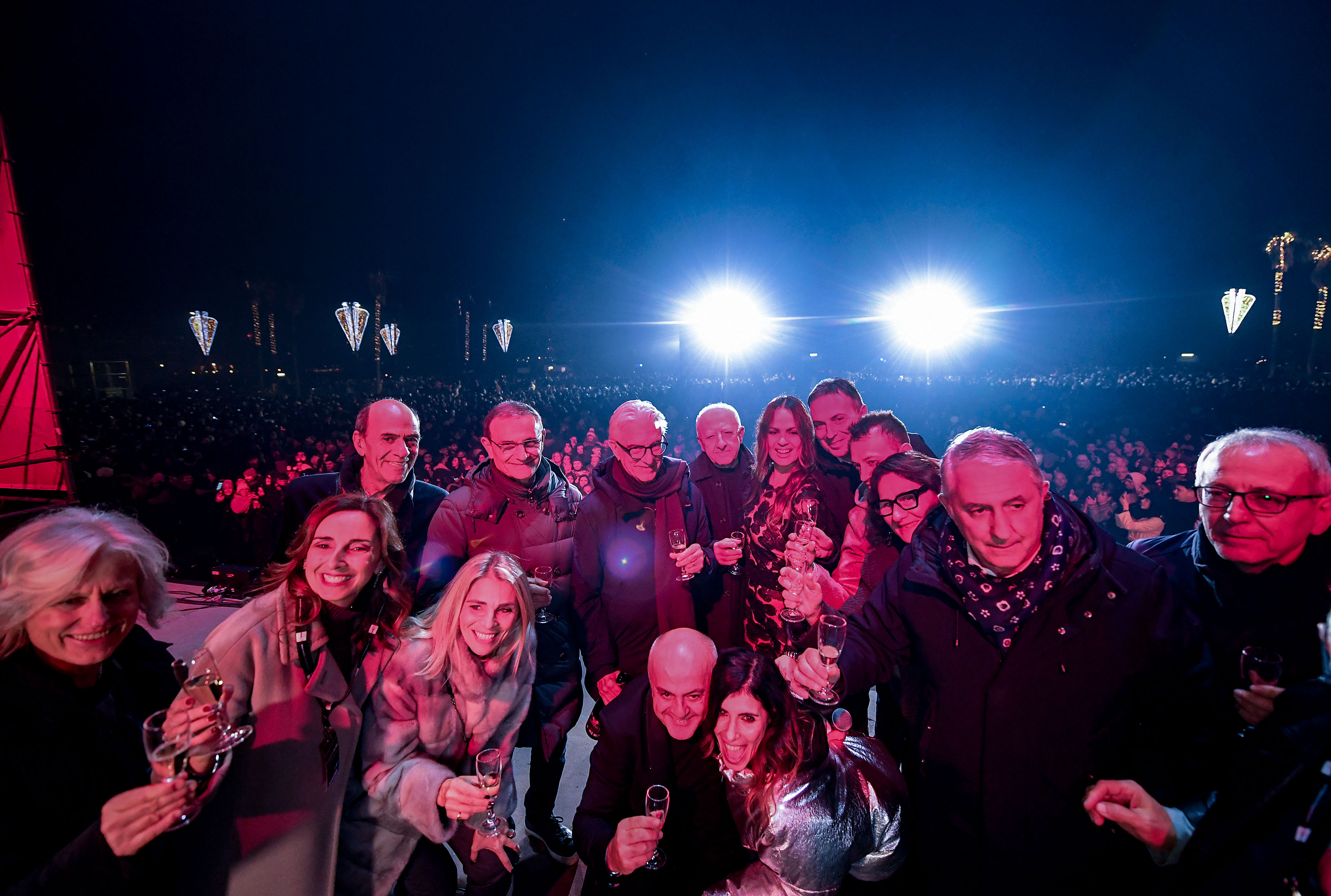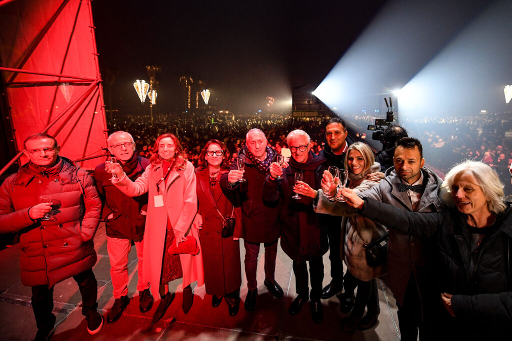 – ore 00.00: festeggiamenti e brindisi con l’artista, i presentatori, il Sindaco e le autorità sul palco; a seguire fuochi d’artificio.