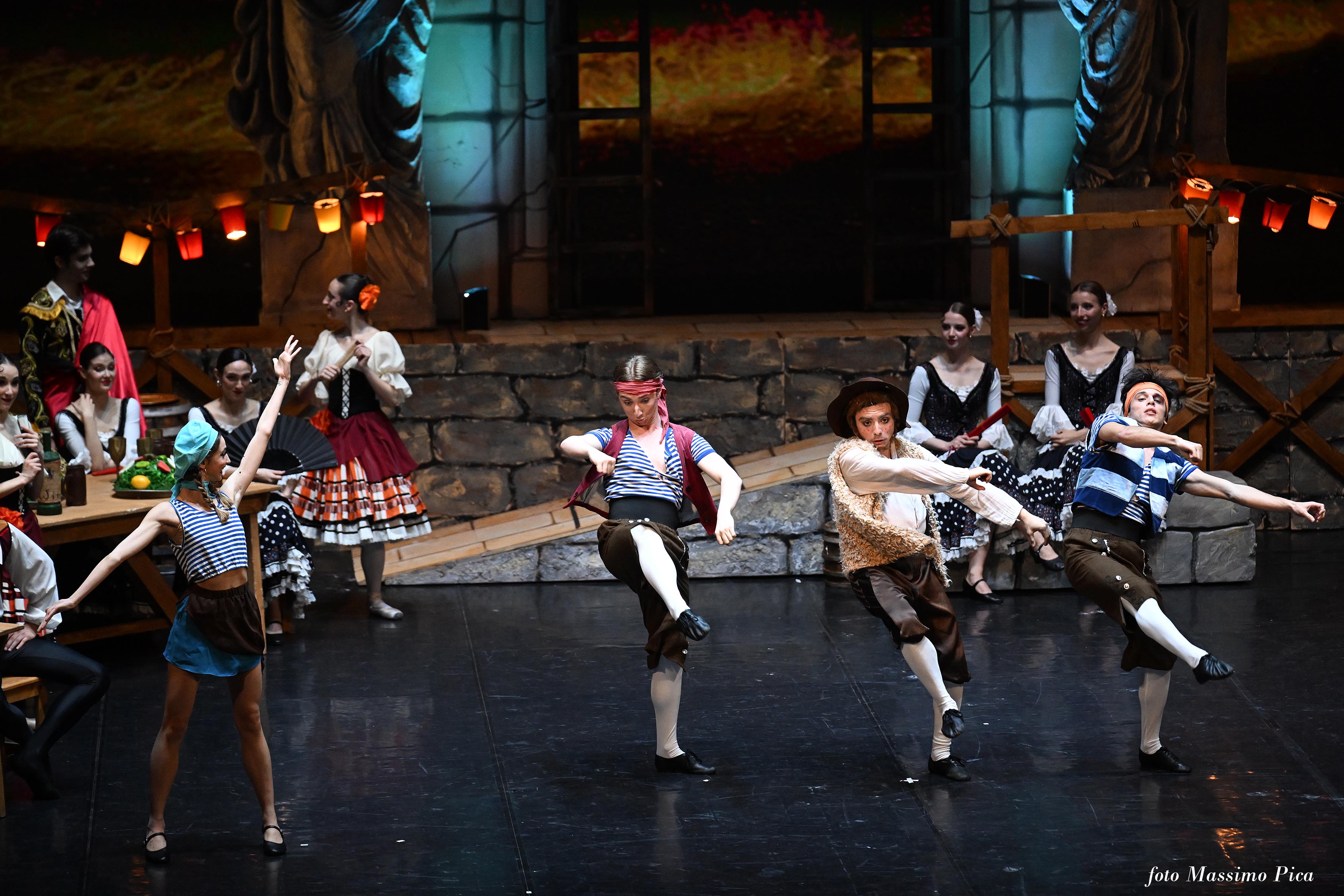 L’energia vivace e solare delle danze rimane un ingrediente chiave delle produzioni di vari teatri odierni. La produzione dell’Opera di Varna, diretta dal coreografo Sergey Bobrov, è un’interpretazione originale che si distingue per l’alto livello artistico. Questa messa in scena mette in risalto le danze spagnole e gitane, piene di vitalità e colori vivaci. Tra i momenti più amati dal pubblico, ci sono le variazioni di Kitri e il grand pas-de-deux di Basilio e Kitri, spesso eseguiti anche in competizioni internazionali. In questa produzione, i solisti dell’Opera di Stato di Varna, come Natalia Bobrova, Mara Salvaggio, Danylo Motkov e Mirko Andreutti, interpretano i ruoli principali, mostrando le loro abilità.