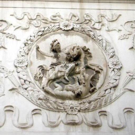 - l’altare maggiore seicentesco in marmi policromi, con inserti in madreperla e rilievi in marmo bianco, con la statua di San Giorgio che uccide il drago, attribuito ai maestri carraresi Pietro e Bartolomeo Ghetti.