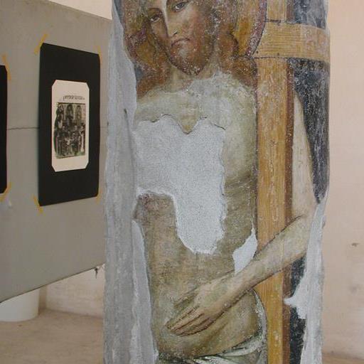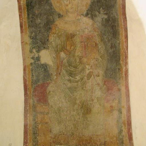 Al livello superiore la chiesa presenta una pianta longitudinale divisa in tre navate con colonne di spoglio e, come detto, si tratta di una ristrutturazione del XIII secolo. Il campanile è invece del Seicento, mentre della fine del XV secolo sono i due affreschi su colonne, uno dei quali rappresenta un Cristo ottimamente conservato.