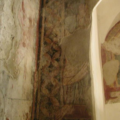 Santa Maria de Lama conserva le uniche testimonianze di pittura longobarda a Salerno. Nasce come edificio di culto longobardo nell’XI secolo strutturata su due livelli. L’ipogeo, che è la chiesa originale si presenta come una chiesa orientata a Est con colonnelle e una serie di affreschi di santi alle pareti. Tali affreschi sono di epoche differenti, a testimoniare anche una ristrutturazione della chiesa in epoche diverse. Tra i più antichi dipinti sono riconoscibili un Sant’Andrea e un San Bartolomeo di pregevole fattura data l’antichità. La ristrutturazione della chiesa probabilmente nel XIII secolo è stata fatta in relazione con la chiesa superiore, di cui conserva l’orientamento nuovo e la struttura in tre navate. Gli affreschi appartenenti a questa nuova fase sono di una serie di altri santi, tra cui un San Lorenzo e una Santa Radegonda.