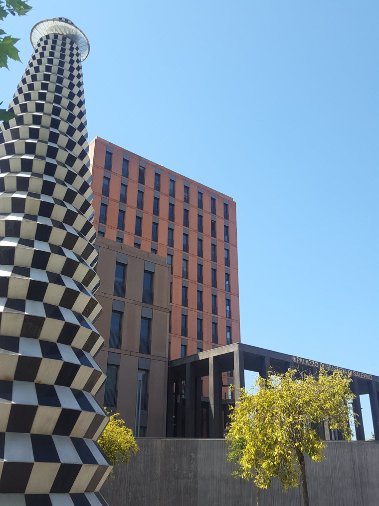 L’area in cui sorge il complesso giudiziario è tra la strada che costeggia il fiume Irno, i binari delle Ferrovie dello Stato vicini alla stazione e il mare. L’intervento ha ridisegnato tutta la zona urbana a ridosso del centro commerciale.