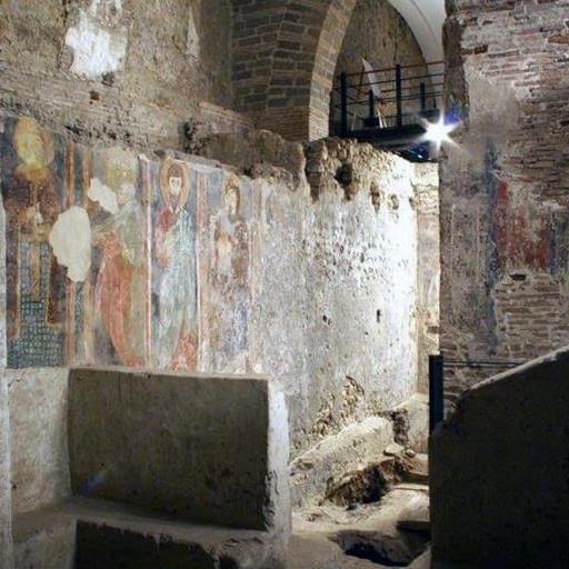 - un vasto ambiente sotterraneo “ipogeo” con tracce di terme romane di età imperiale (I-II secolo d. C.) e di un luogo di culto e sepoltura paleocristiano (V-VII secolo), poi diventato oratorio in epoca normanna, con affreschi del XII secolo.