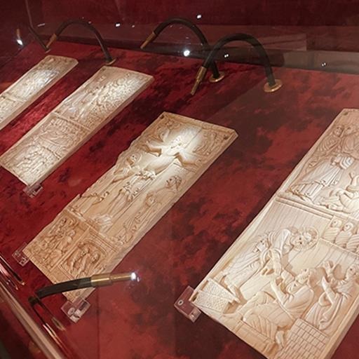 Fra tutte le opere, si segnala innanzitutto il ciclo degli avori, la più vasta e completa raccolta di tavolette d’avorio del Medioevo cristiano esistente al mondo. Il ciclo si compone di 64 pezzi, di cui 34 illustrati con scene raffiguranti episodi del Vecchio e Nuovo Testamento. La datazione sarebbe compresa tra la fine dell’XI e i primi decenni del XII secolo.