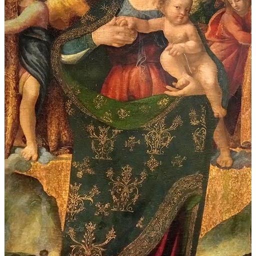 Il dipinto è stato attribuito alla scuola degli allievi di Francesco Solimena, con particolare riferimento a Leonardo Antonio Olivieri attivo a Napoli dal 1715. La Madonna è raffigurata con Gesù bambino in braccio mentre tiene un velo di colore giallo e in basse il piccolo san Giovannino intento ad accarezzare un piedino del bambinello.