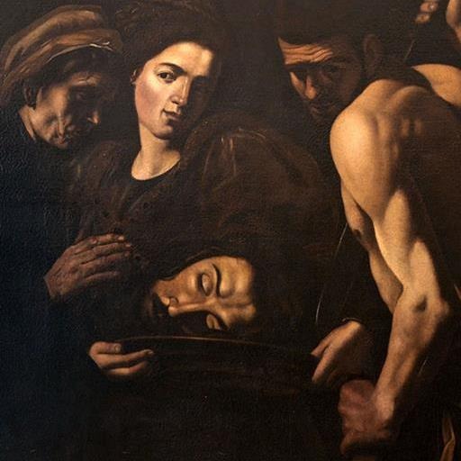 Nell’opera l’ignoto seguace di Battistello Caracciolo si è rifatto ad una rappresentazione di Salomè con la testa del Battista che doveva circolare nell’ambiente caravaggesco napoletano. Nel dipinto è raffigurata Salomè in primo piano con il vassoio su cui è stata poggiata la testa del Battista, accanto vi è una donna anziana, identificabile con Erodiade, moglie di Erode e madre di Salomè e a destra c’è il boia ancora il coltello in mano.